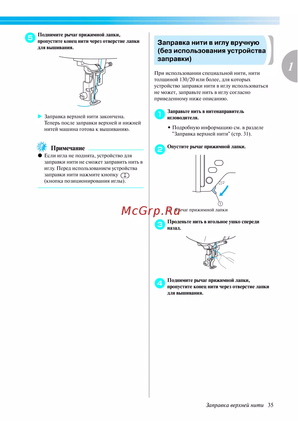 Узнайте, как правильно заправить верхнюю нить в швейной машине для вышивания. Подробные инструкции и советы по использованию устройства заправки.