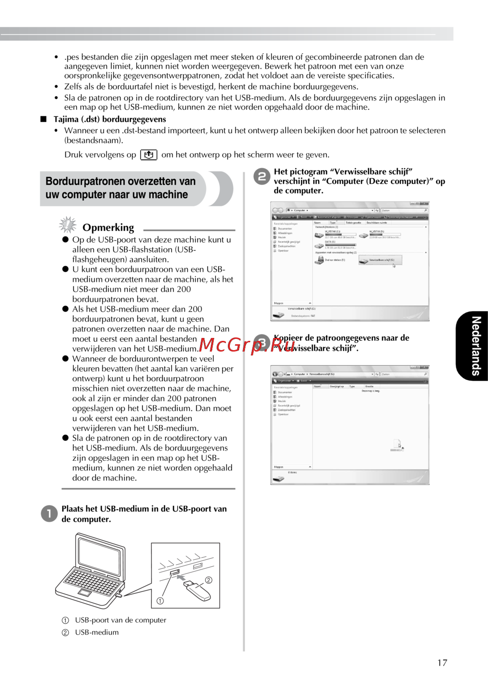 Brother INNOV-'IS NV-750E — instructies voor het overzetten van borduurpatronen naar de machine [19/40]