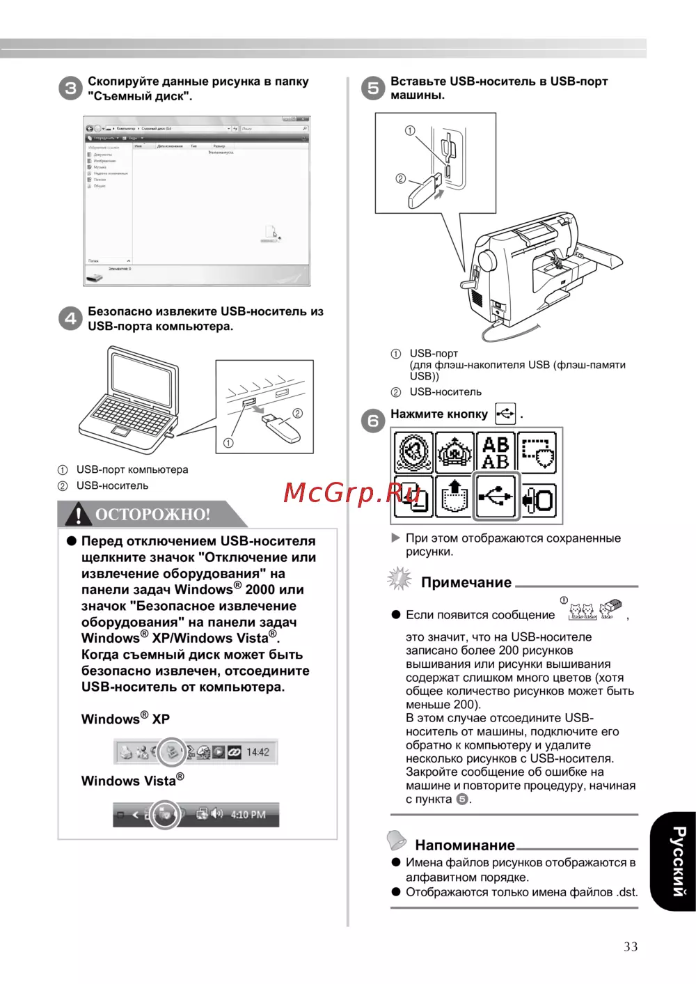 - Перед отключением usb носителя щелкните значок отключение или извлечение оборудования на панели задач window p.35