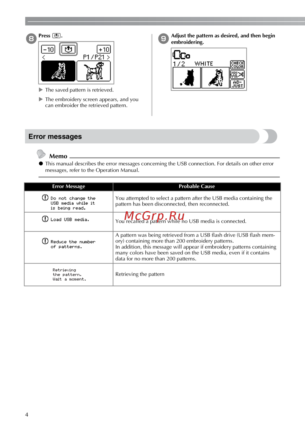 Brother INNOV-'IS NV-750E — инструкция по работе с вышивальными паттернами и ошибками [6/40]