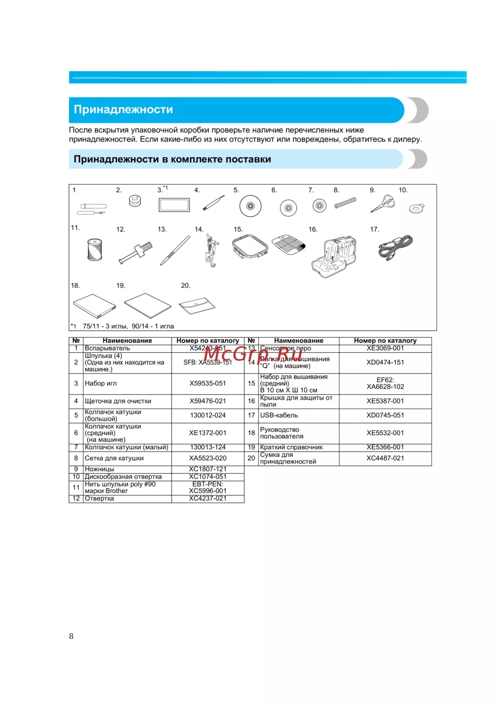 Brother INNOV-'IS NV-90E — проверка комплектации и принадлежностей после распаковки [10/92]