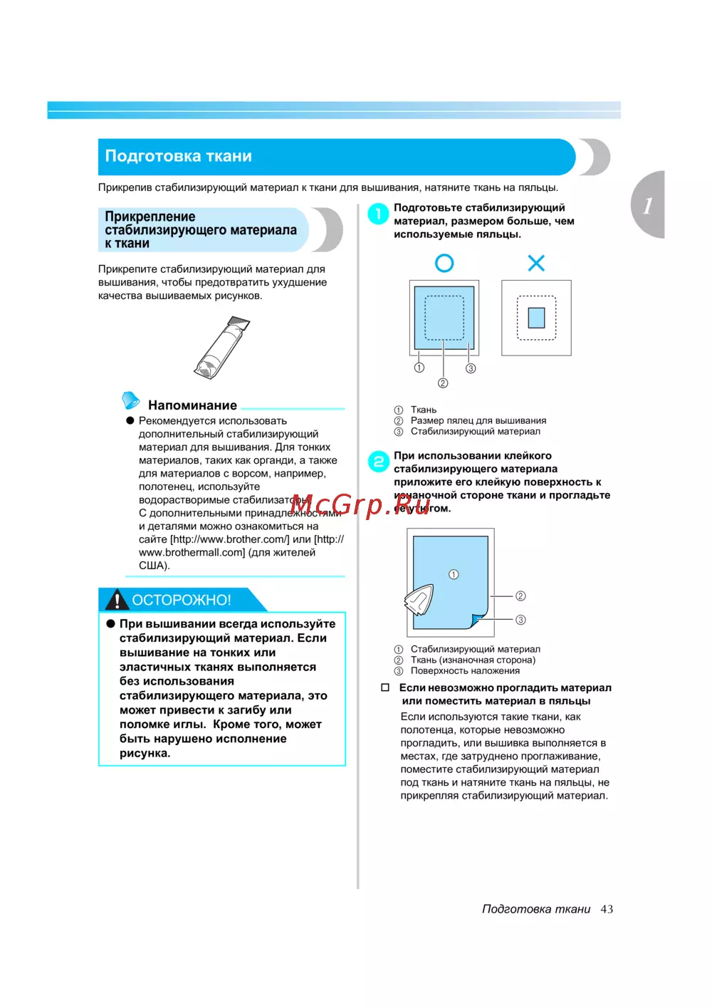 Brother INNOV-'IS NV-90E — подготовка ткани для вышивания: советы и рекомендации [45/92]