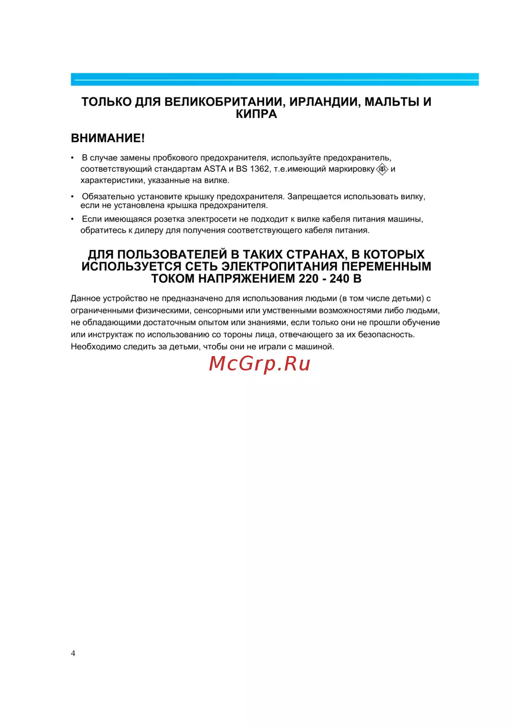 - Для пользователей в таких странах в которых используется сеть электропитания переменным током напряжением 220 240 в p.6
