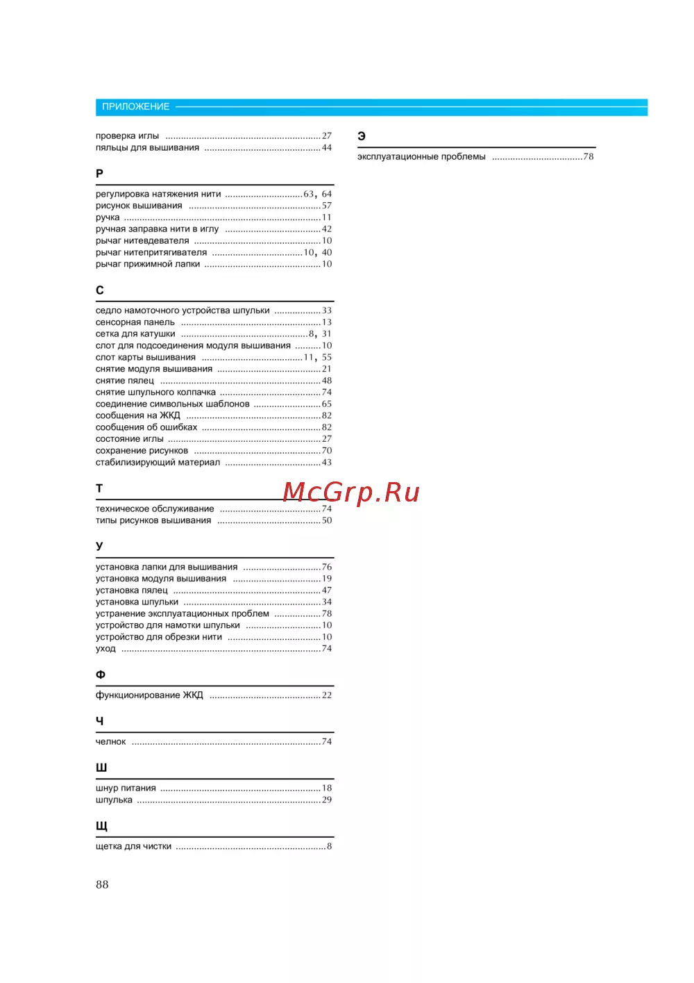 - Вышивание рисунков выполняется со сменой нити при каждой замене цвета p.59