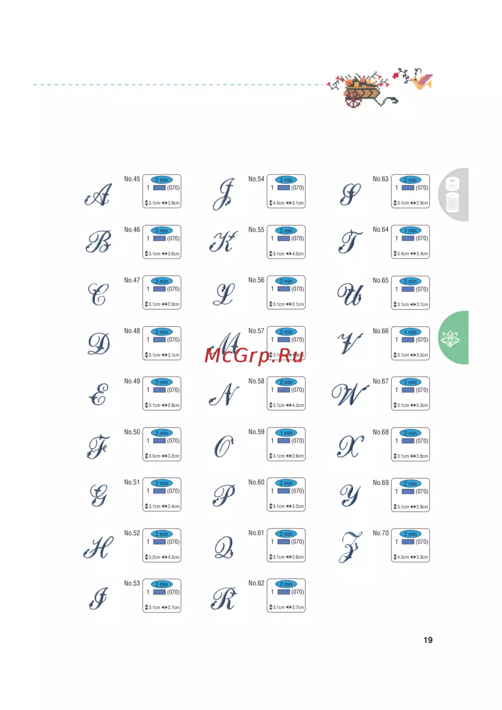 - Embroidery pattern color change table stickmuster farbtabelle tableau de changement de couleur des motifs de broderie kleurwijzigingstabel voor de borduurpatronen tabella di cambiamento colori degli schemi di ricamo tabla de cambio de color para patrones de bordado p.20