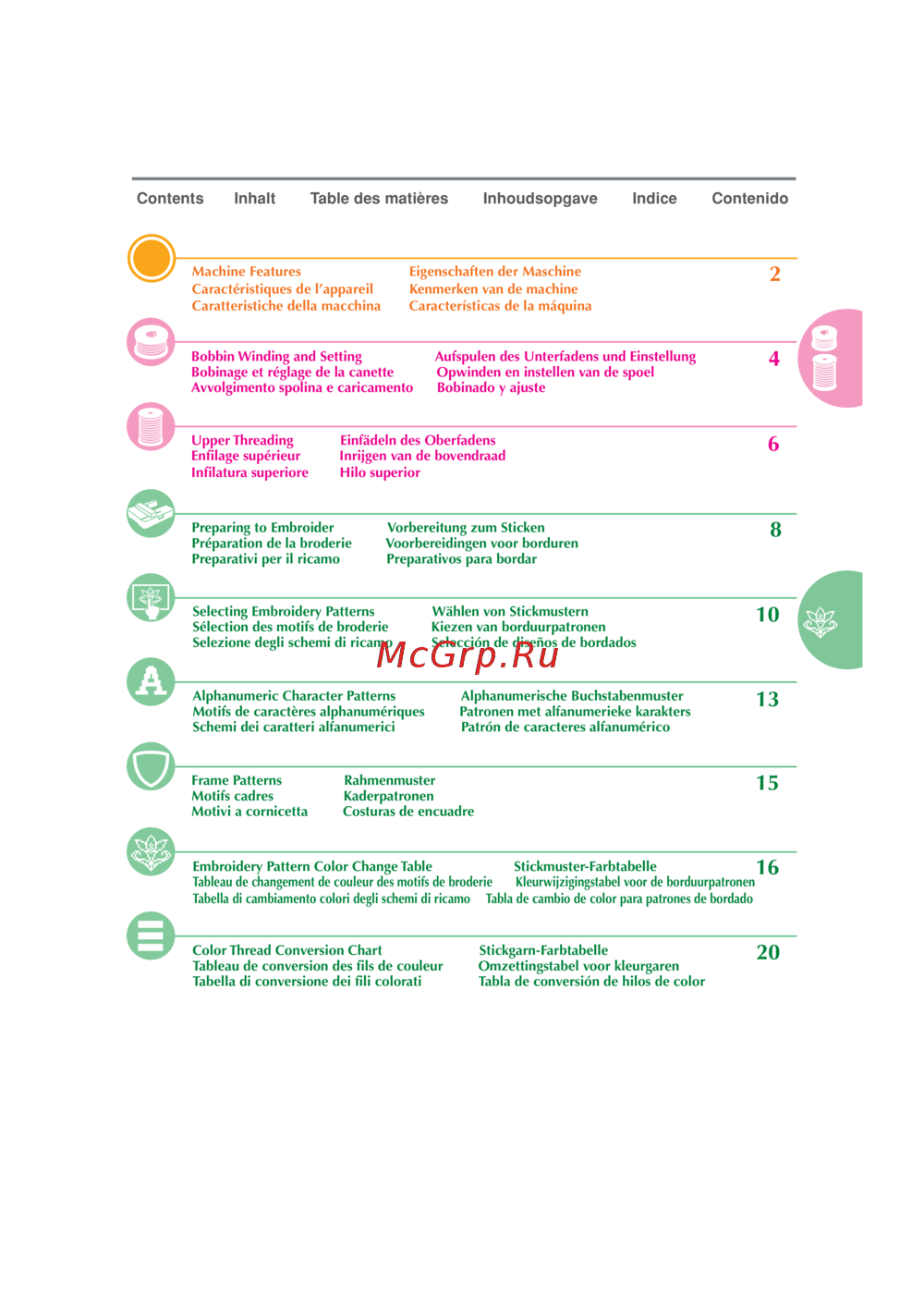 - Contents inhalt table des matières inhoudsopgave indice contenido p.3