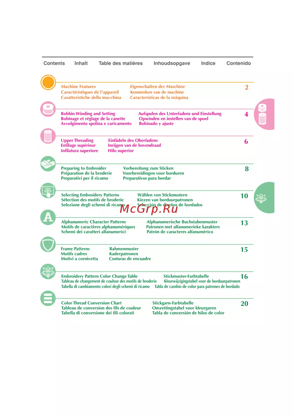 - Embroidery pattern color change table stickmuster farbtabelle tableau de changement de couleur des motifs de broderie kleurwijzigingstabel voor de borduurpatronen tabella di cambiamento colori degli schemi di ricamo tabla de cambio de color para patrones de bordado p.20