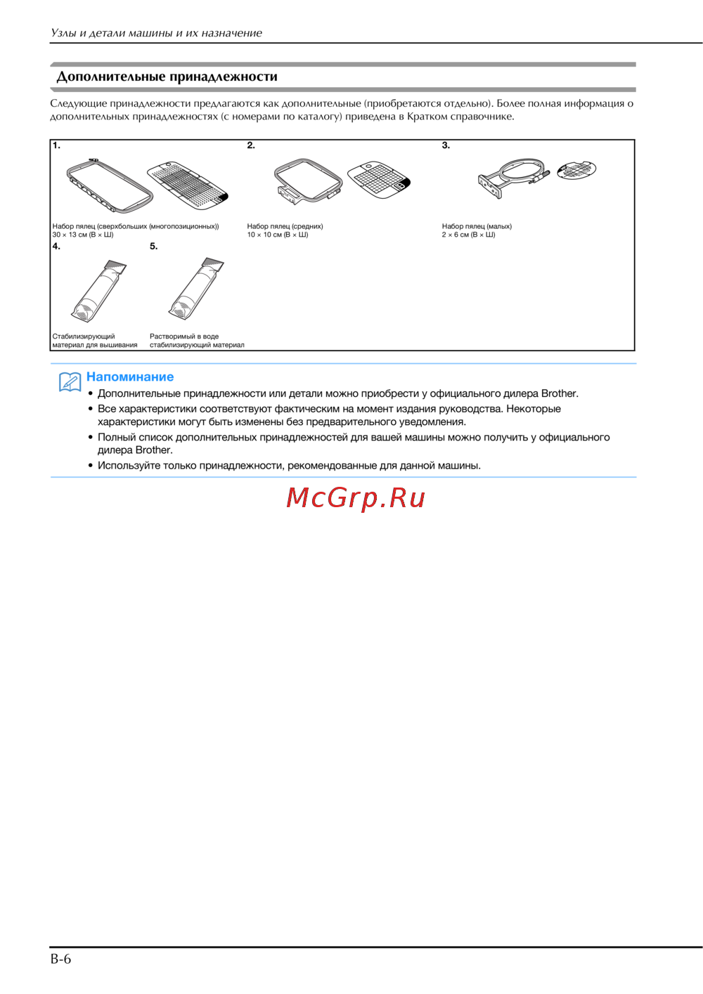• Полный список дополнительных принадлежностей для вашей машины можно получить у официального