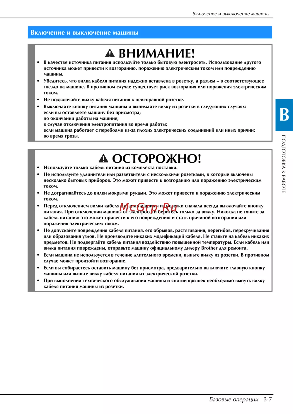 Узнайте, как правильно включать и выключать машину, чтобы избежать возгораний и поражений электрическим током. Следуйте рекомендациям для безопасного использования.