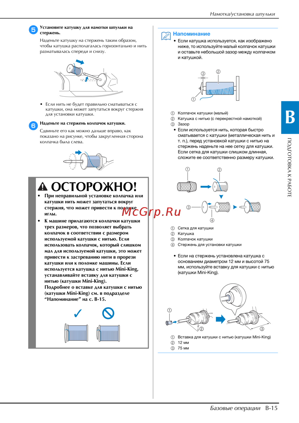 - Убедитесь в правильной установке шпульного колпачка в противном случае возможна поломка иглы p.88