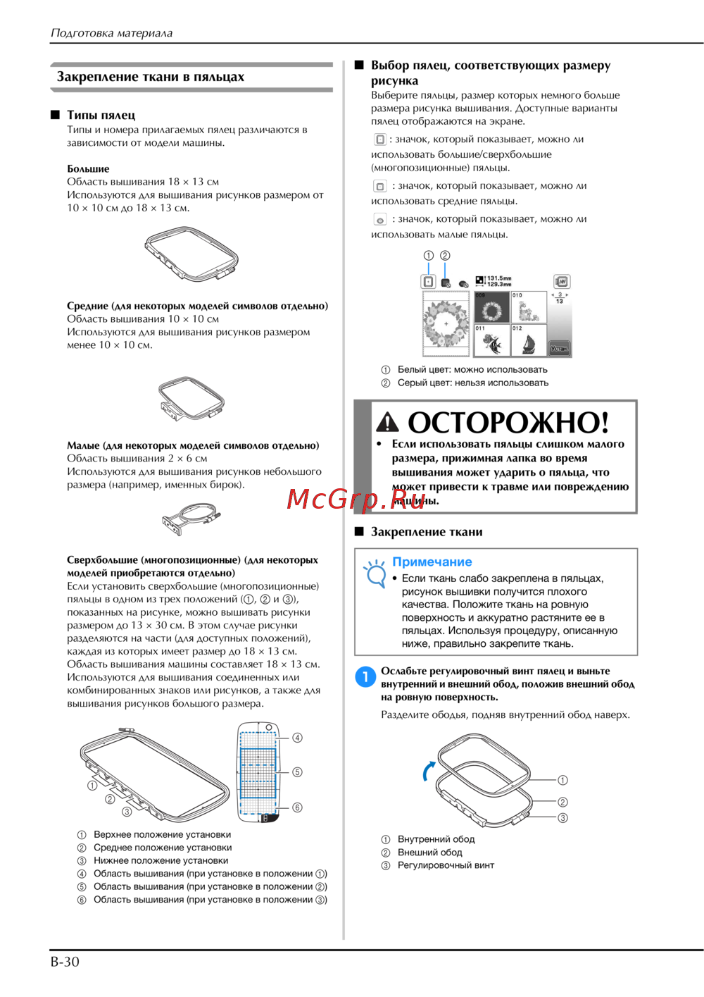 ■ Выбор пялец, соответствующих размеру