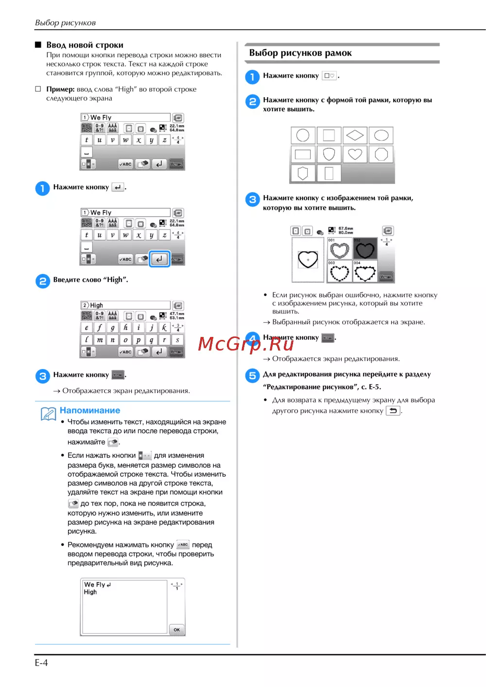 Brother INNOV-IS NV F440E (F 440 E) — как выбрать и редактировать рисунки на экране ввода текста [52/100]