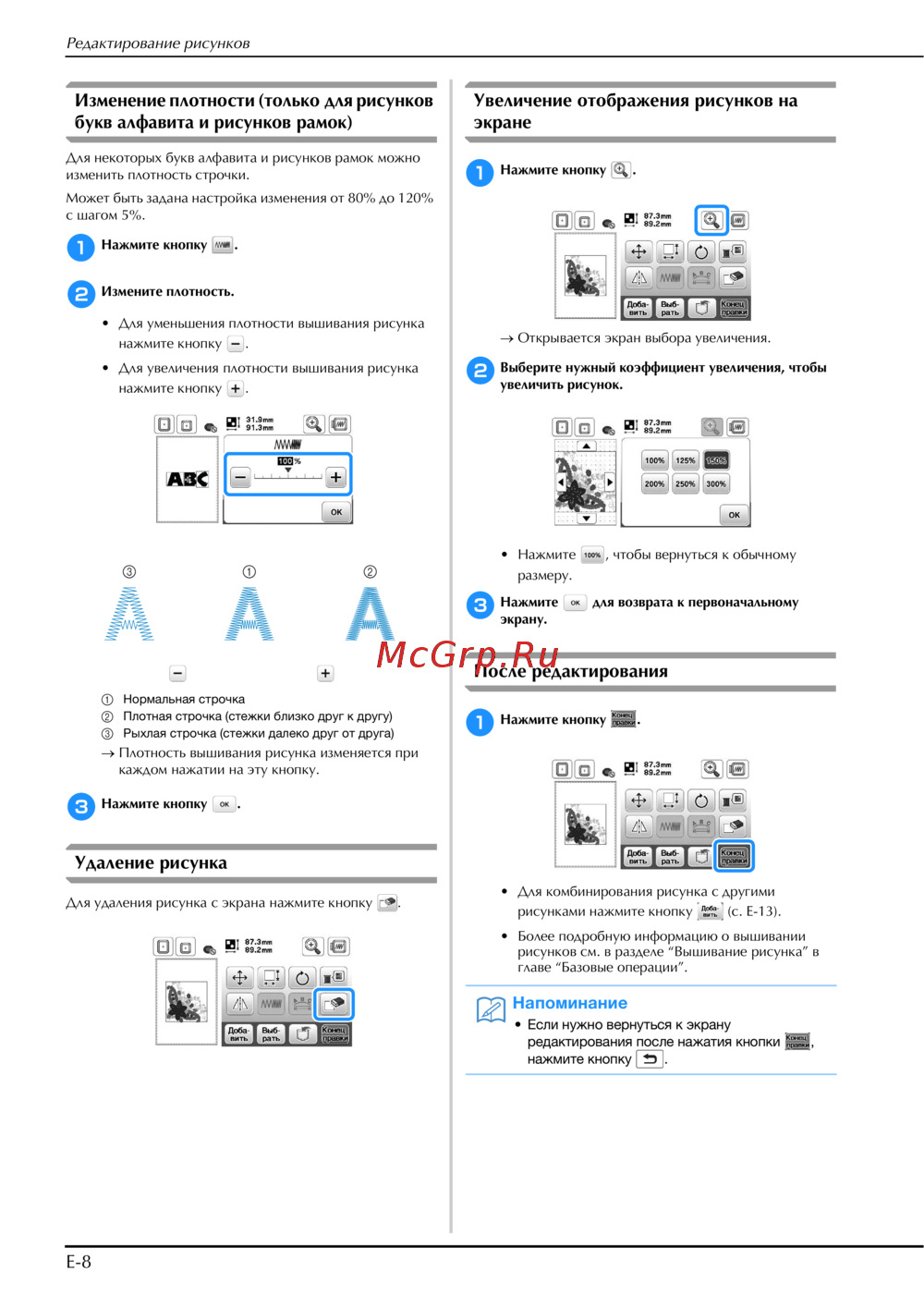 Brother INNOV-IS NV F440E (F 440 E) — редактирование рисунков: изменение плотности и увеличение [56/100]