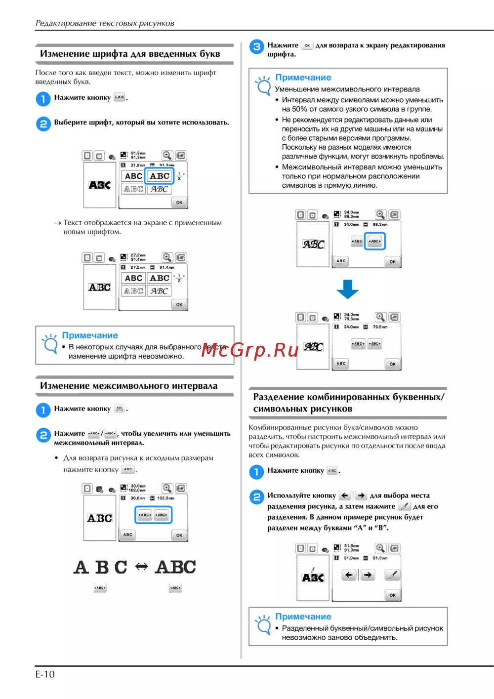 Brother INNOV-IS NV F440E (F 440 E) — редактирование текстовых рисунков: изменение шрифта и интервала [58/100]