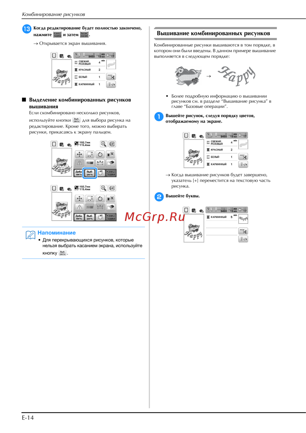 Brother INNOV-IS NV F440E (F 440 E) — как комбинировать и вышивать рисунки на экране [62/100]