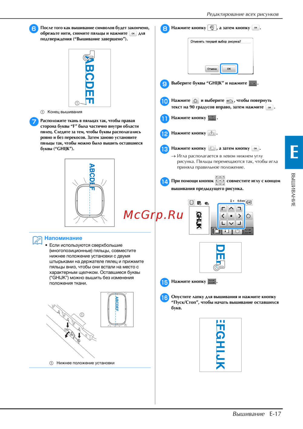 (“GHIJK”) можно вышить без изменения