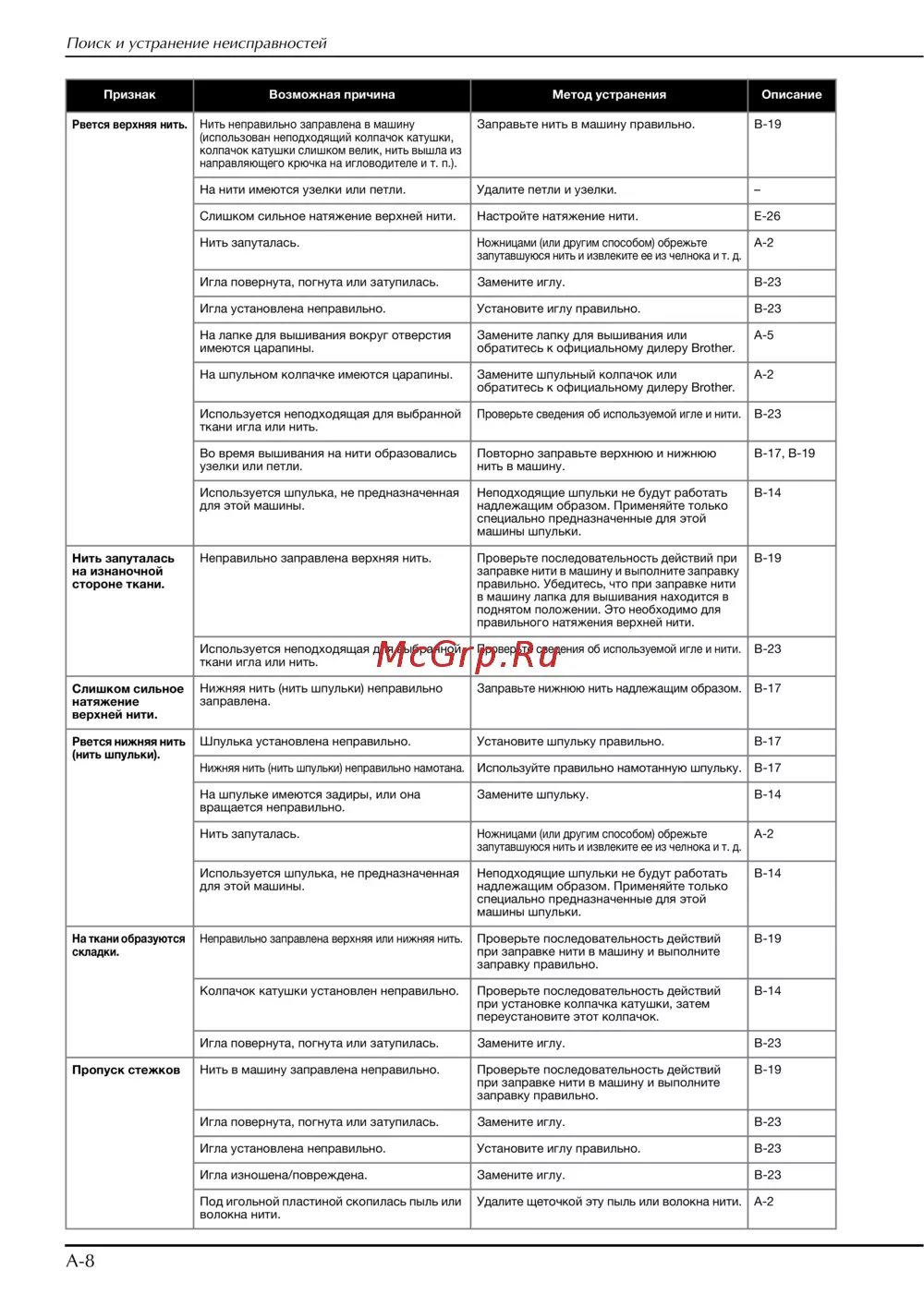 Brother INNOV-IS NV F440E (F 440 E) — поиск и устранение неисправностей швейной машины [92/100]
