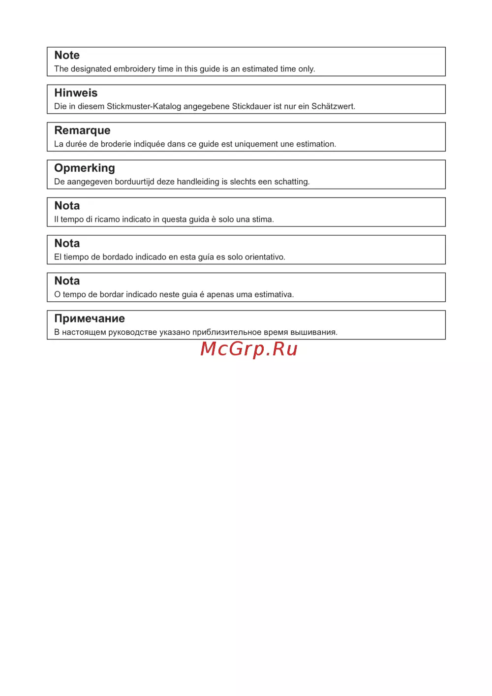 Die in diesem Stickmuster-Katalog angegebene Stickdauer ist nur ein Schätzwert.