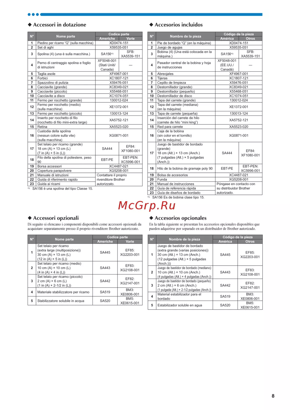 Brother INNOV-IS NV F440E (F 440 E) [9/20] En la tabla siguiente se presentan los accesorios opcionales disponibles que pueden adquirirse por separado en un distribuidor de brother autorizado
