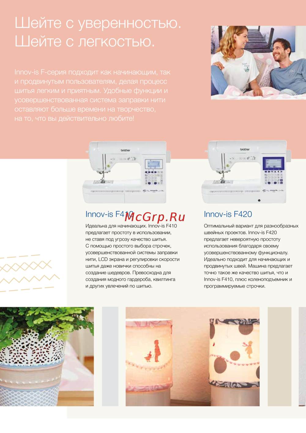 - Innov is f серия подходит как начинающим так и продвинутым пользователям делая процесс шитья легким и приятным удобные функции и усовершенствованная система заправки нити оставляют больше времени на творчество на то что вы действительно любите p.4