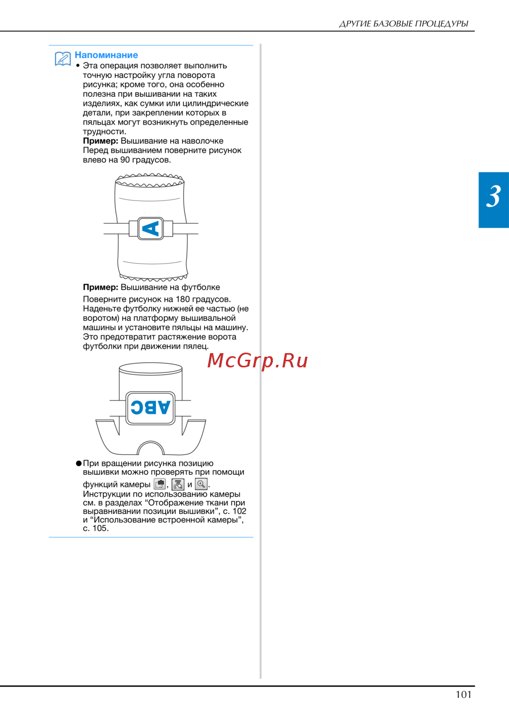 Brother PR 1050X ENTREPRENEUR PRO X (PR1050X) — как правильно настраивать угол поворота рисунка для вышивки [103/316]