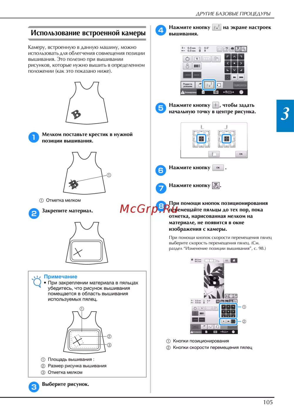 Brother PR 1050X ENTREPRENEUR PRO X (PR1050X) — использование встроенной камеры для вышивания [107/316]