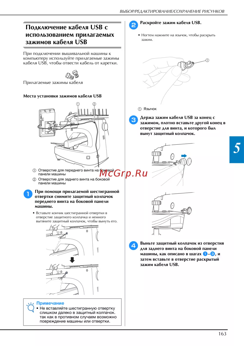 ![Brother PR 1050X ENTREPRENEUR PRO X (PR1050X) [165/316] Подключение кабеля usb с использованием прилагаемых зажимов кабеля usb](/views2/1342072/page165/bga5.png)