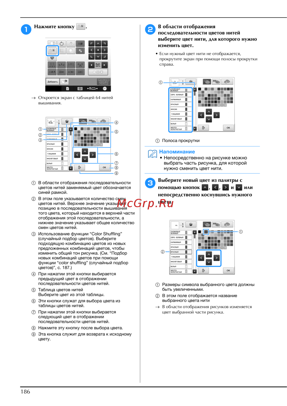 Brother PR 1050X ENTREPRENEUR PRO X (PR1050X) — инструкция по изменению цветов нитей в вышивке [188/316]