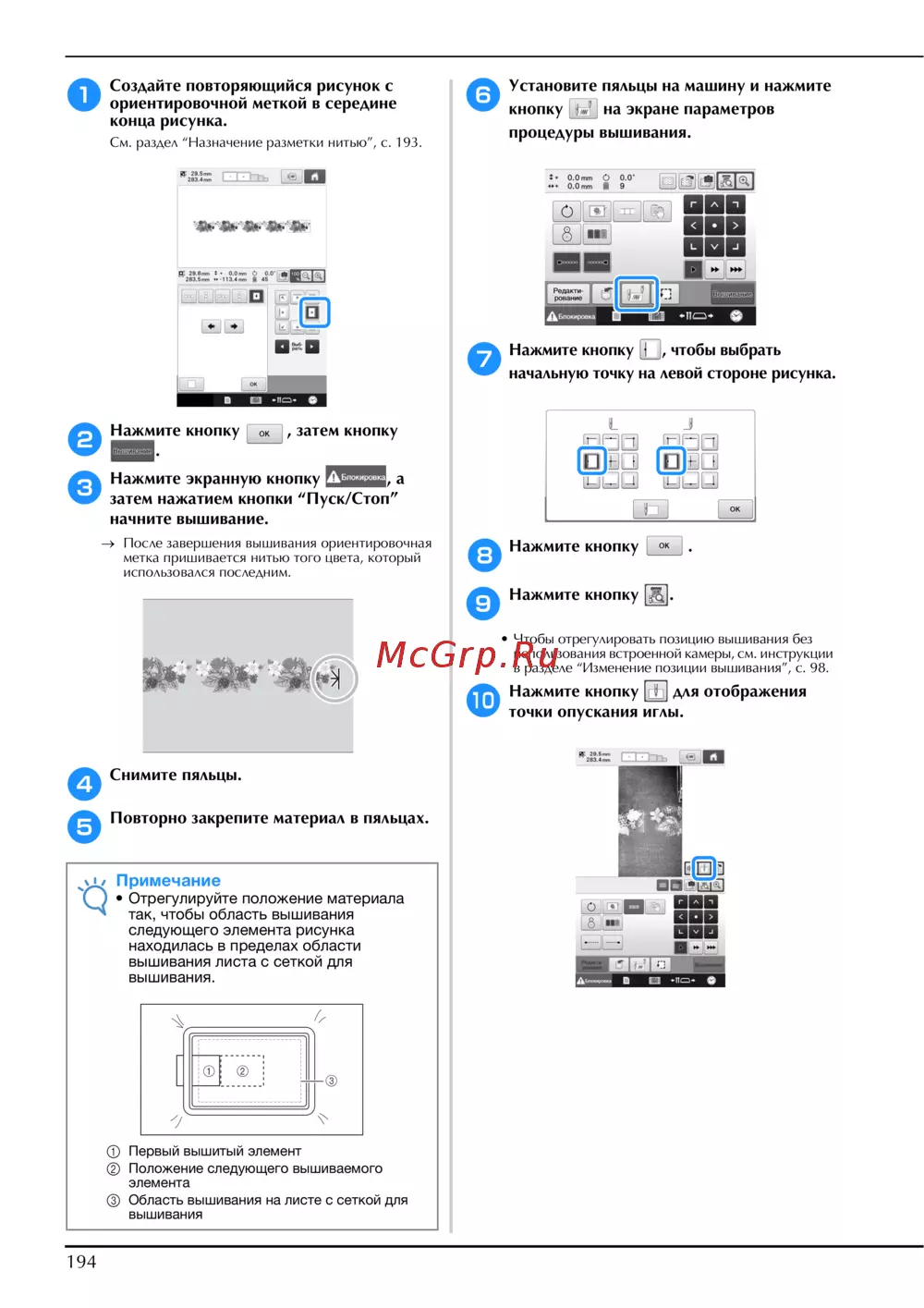 Узнайте, как создать повторяющийся рисунок с ориентировочной меткой. Следуйте пошаговым инструкциям для успешного вышивания и настройки материала.