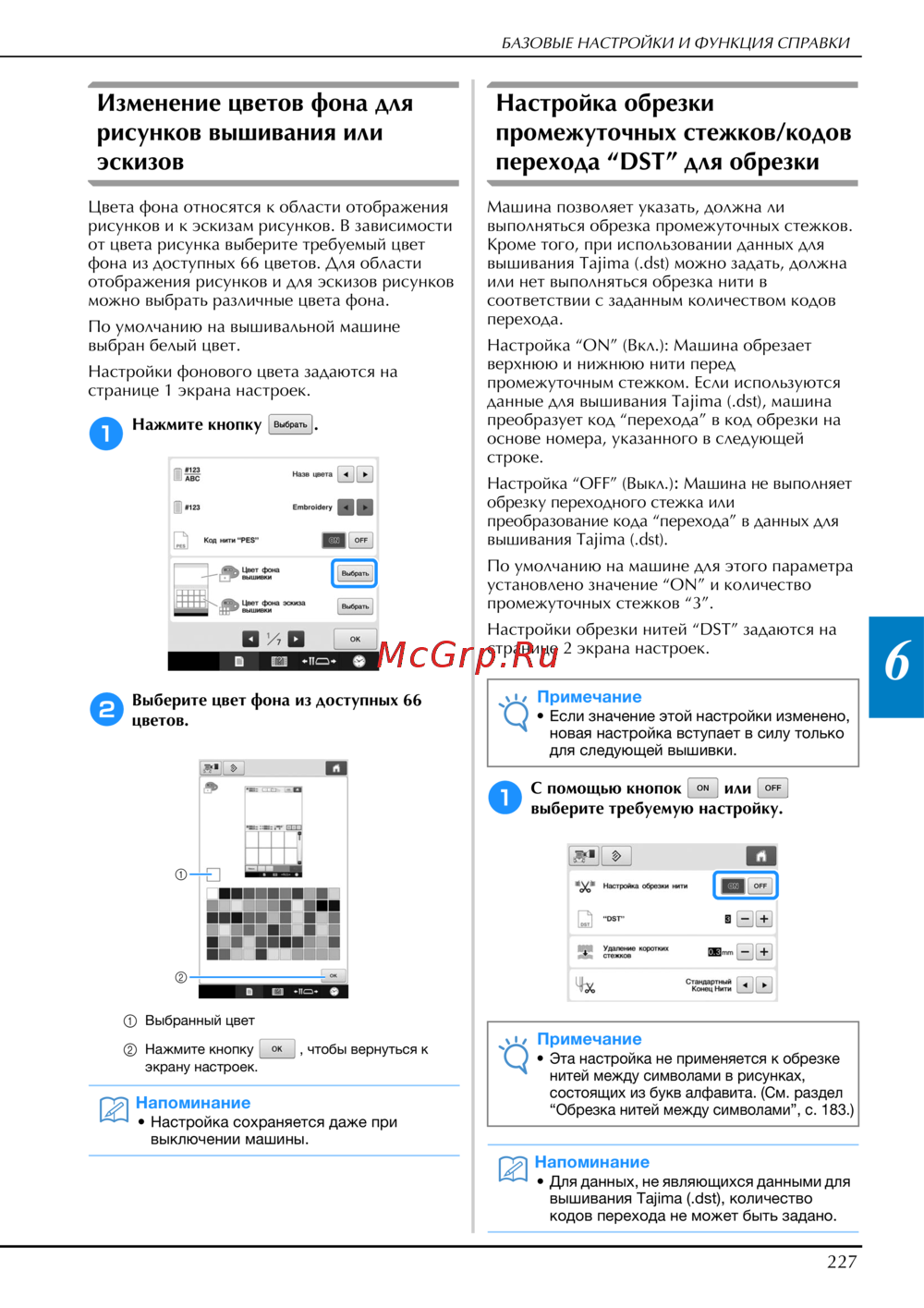 Узнайте, как изменить цвет фона для рисунков и настроить обрезку стежков на вышивальной машине. Подробные инструкции и советы по настройкам.