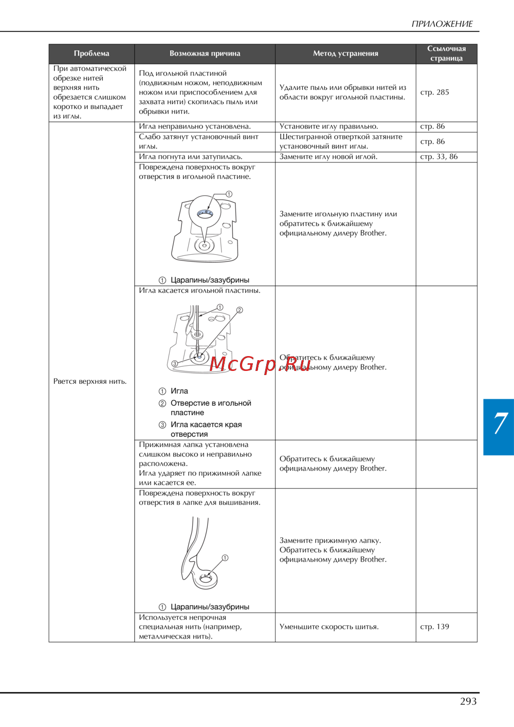 - Если предлагаемые действия по устранению неисправности не решили возникшую проблему обратитесь к официальному дилеру brother p.293