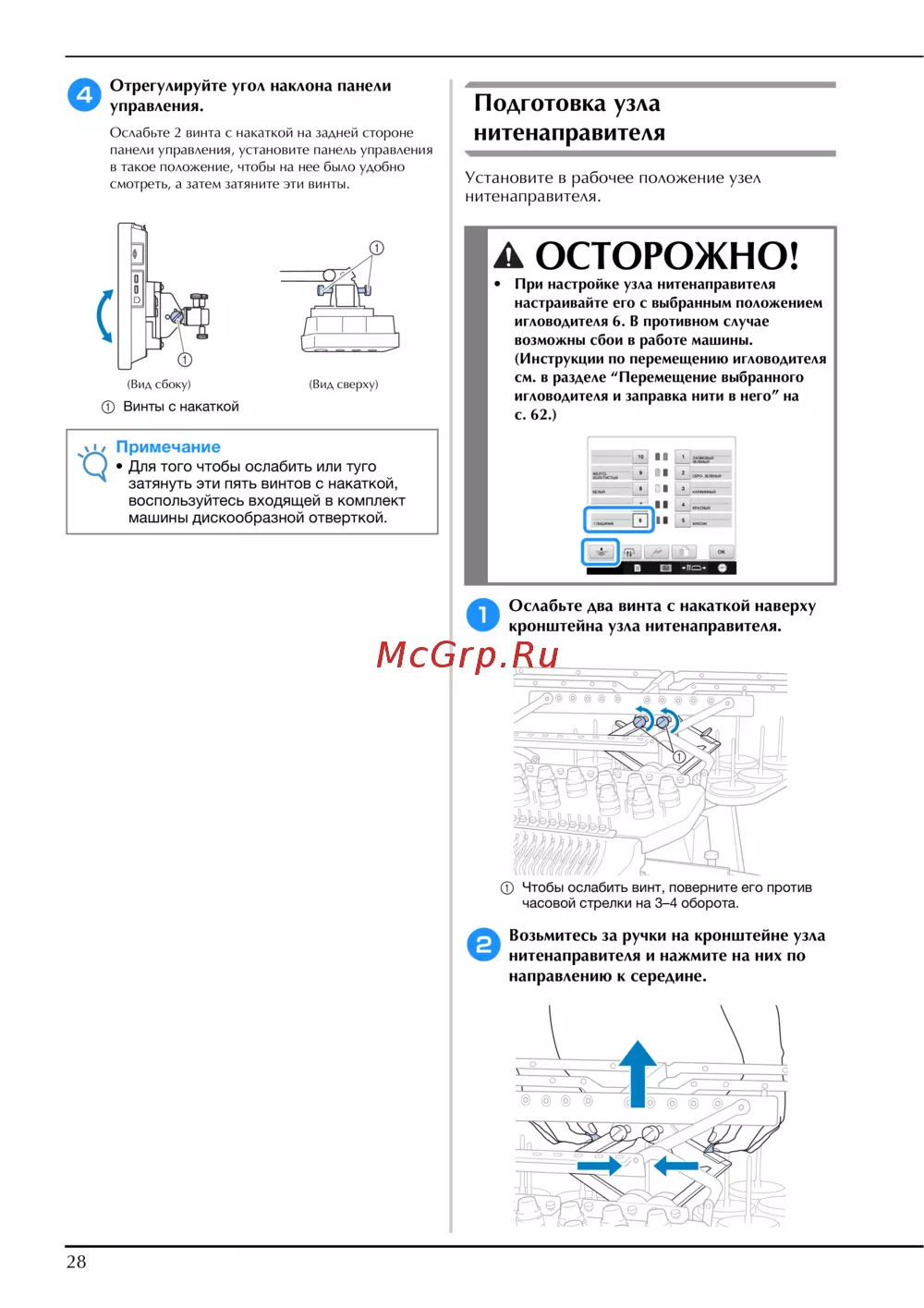 Узнайте, как правильно отрегулировать угол наклона панели управления и установить узел нитенаправителя для оптимальной работы. Следуйте простым инструкциям.