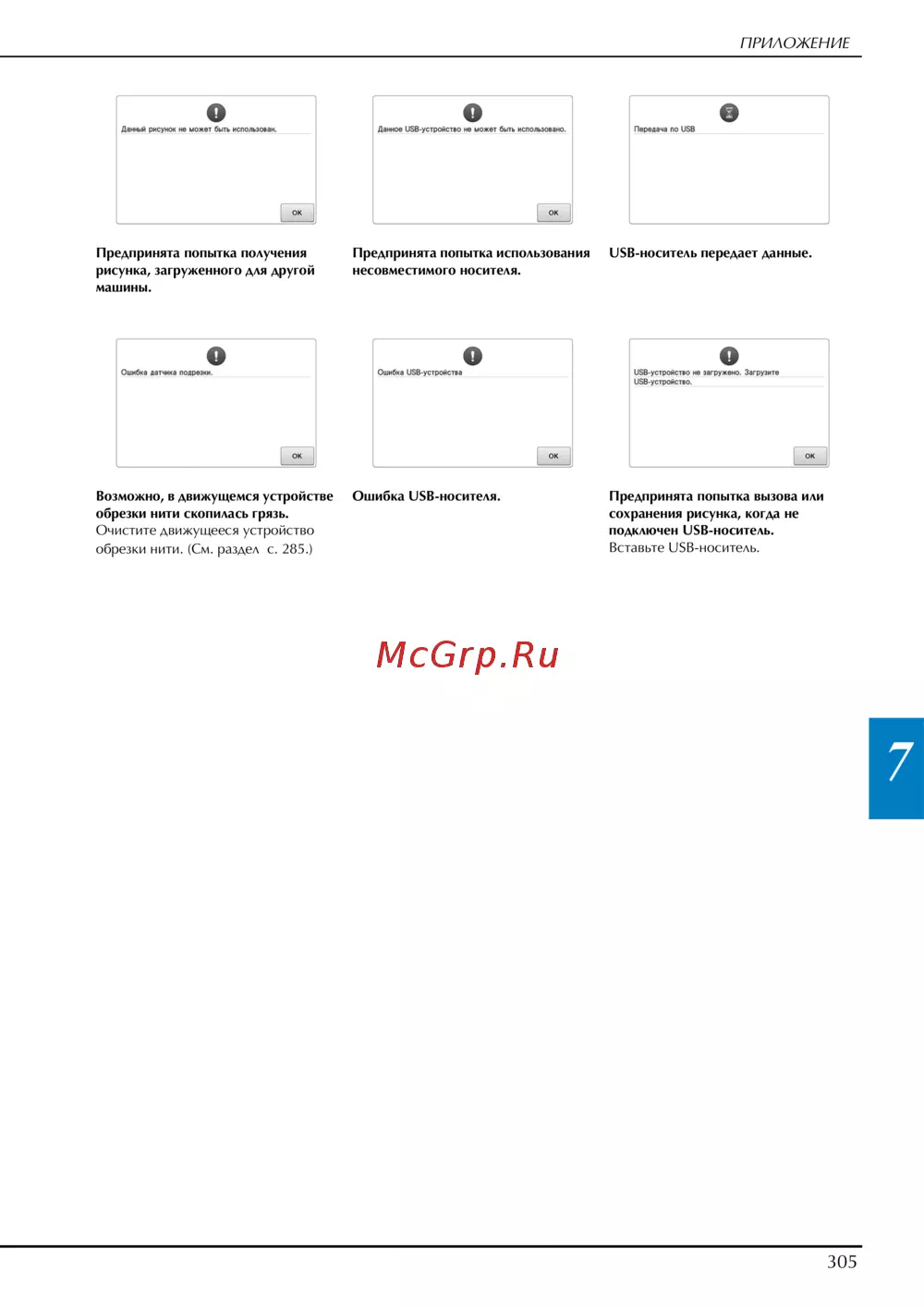 - Сообщения об ошибках p.301
