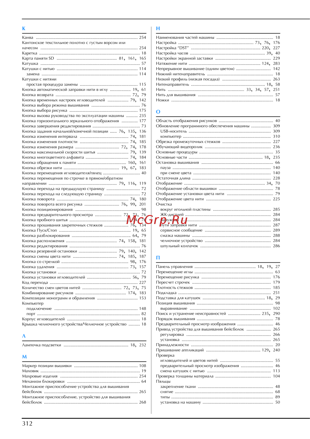 - Не работает механизм автоматической заправки нити в иглу p.296