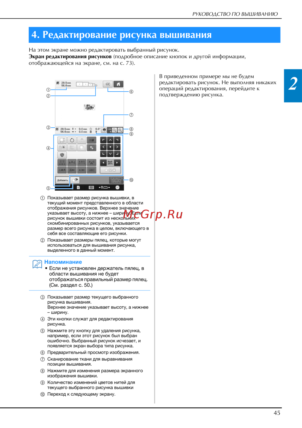 ![Brother PR 1050X ENTREPRENEUR PRO X (PR1050X) [47/316] Редактирование рисунка вышивания](/views2/1342072/page47/bg2f.png)