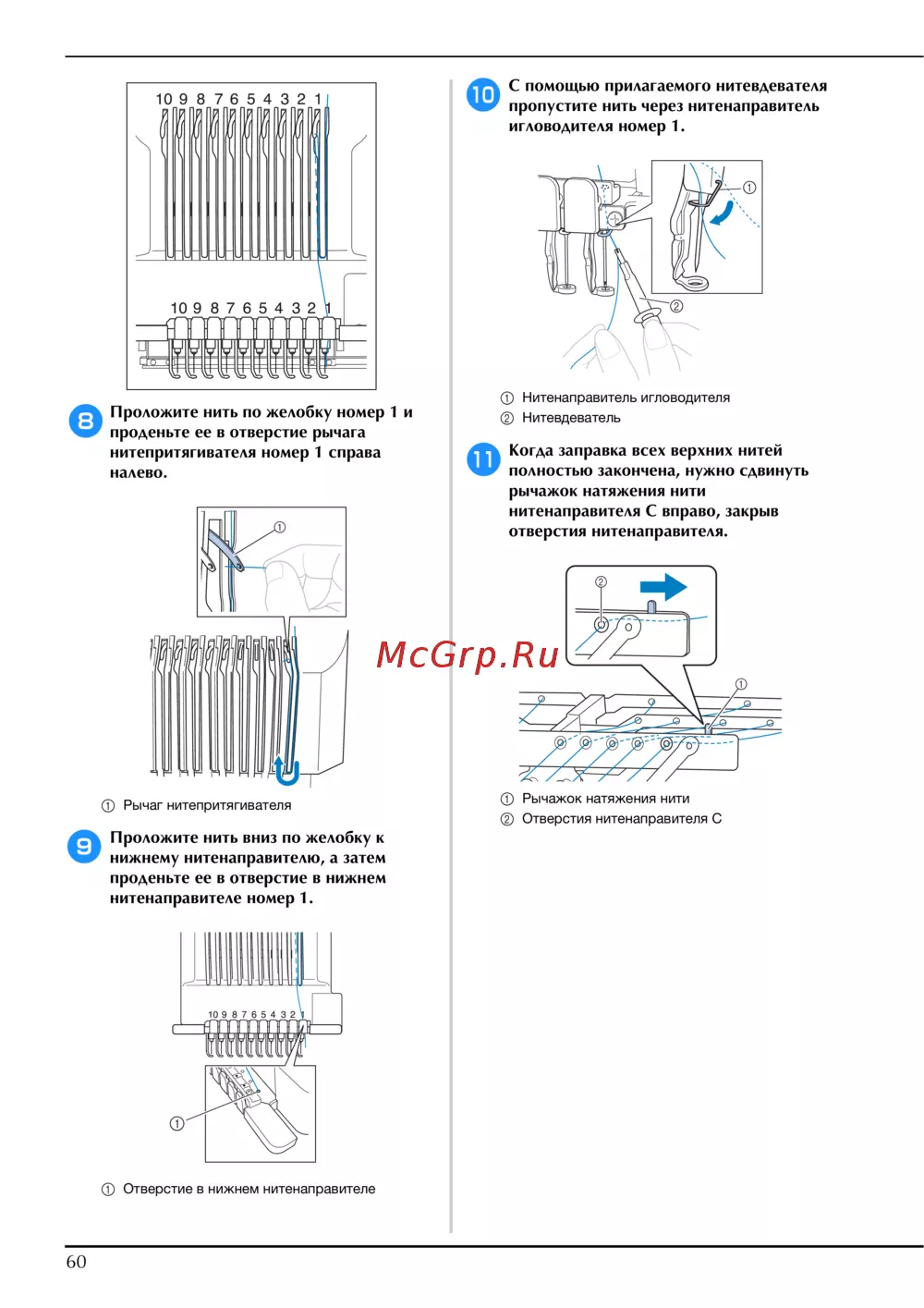 Brother PR 1050X ENTREPRENEUR PRO X (PR1050X) — инструкция по заправке нити в нитепритягиватель и игловодитель [62/316]