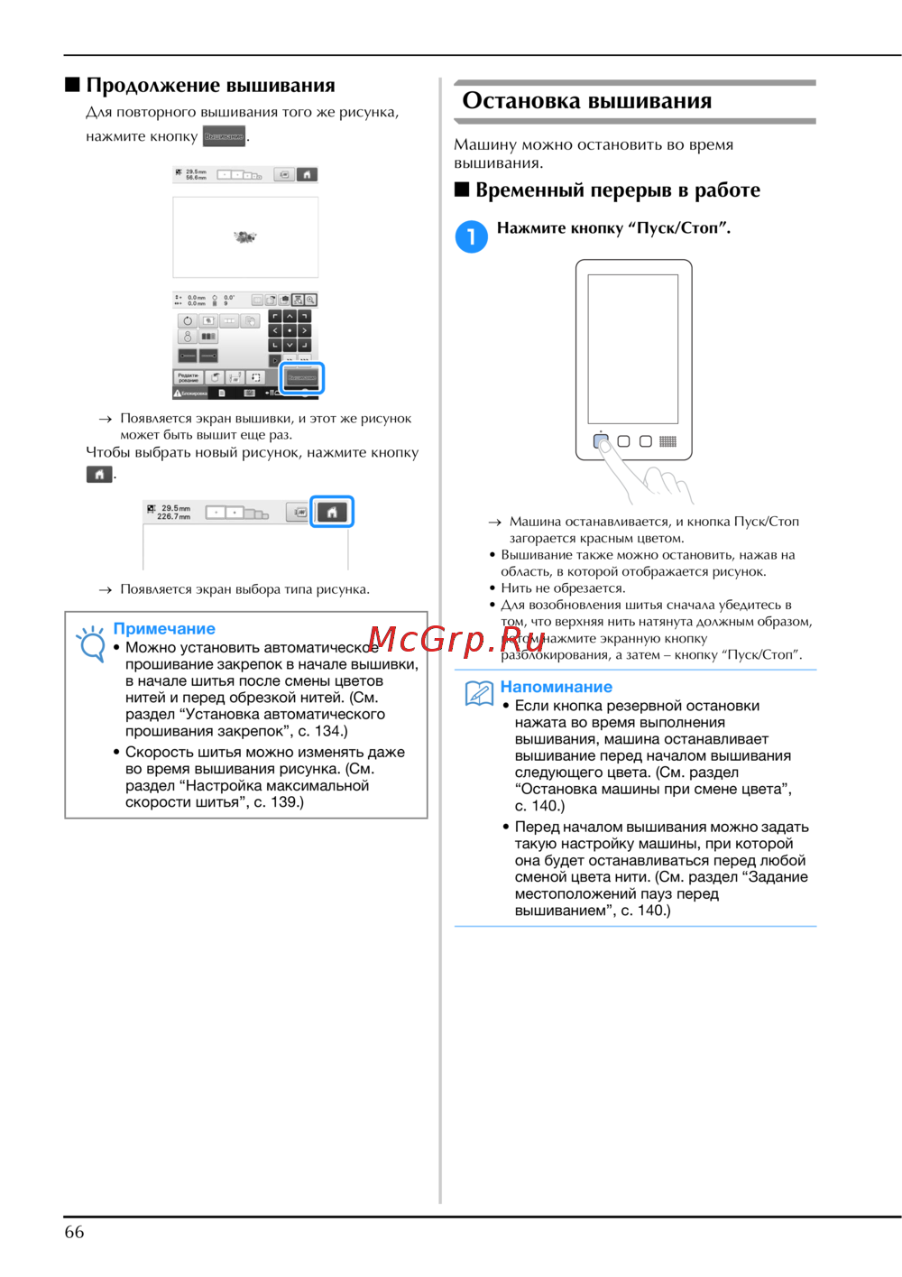- При автоматическом вышивании уменьшается время вышивания p.10