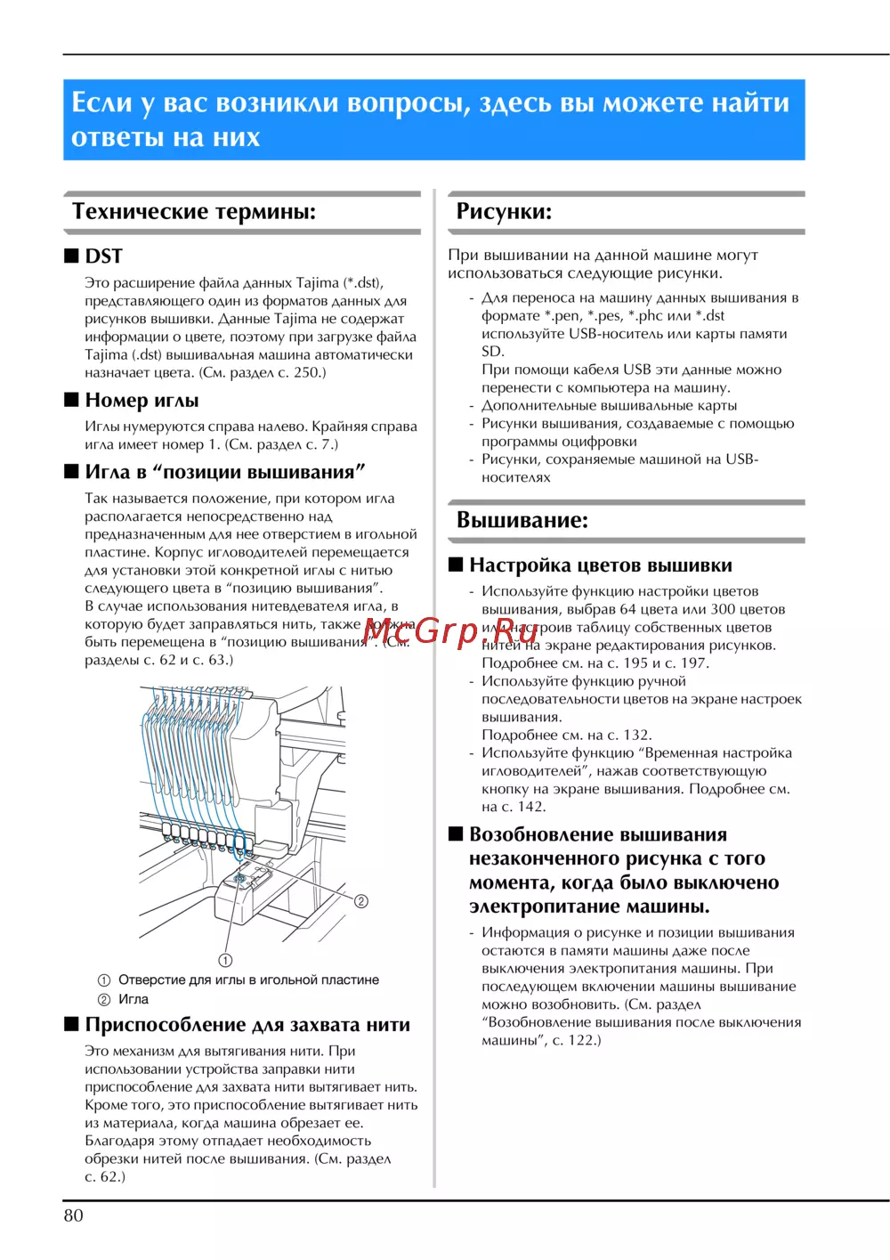 - Не работает механизм автоматической заправки нити в иглу p.296