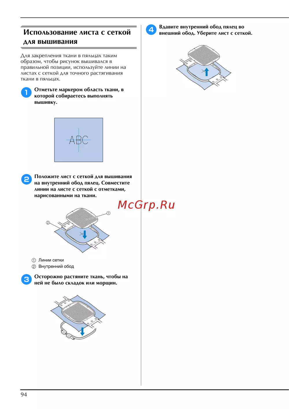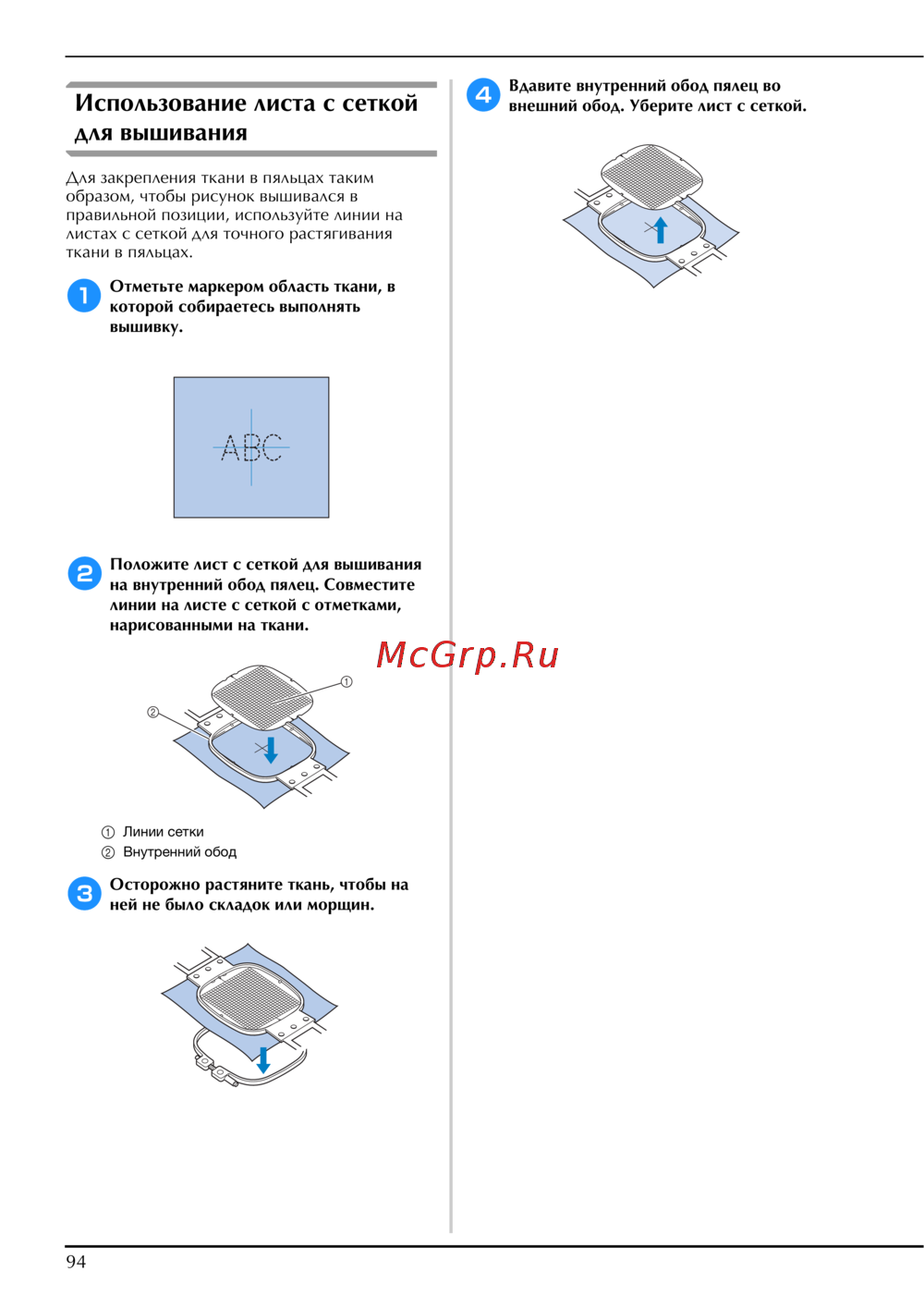 Brother PR 1050X ENTREPRENEUR PRO X (PR1050X) — как использовать лист с сеткой для вышивания: пошаговая инструкция [96/316]