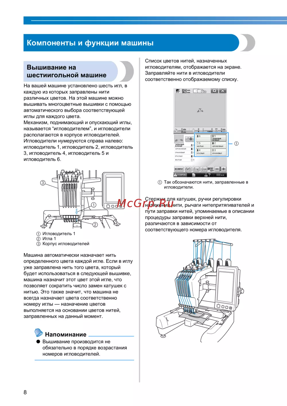 Brother PR 655E ENTREPRENEUR (PR655E) — функции и компоненты шестиигольной вышивальной машины [10/280]