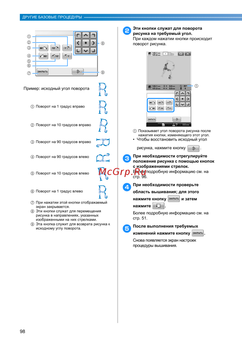 Узнайте, как поворачивать и настраивать рисунок для вышивания с помощью простых кнопок. Подробные инструкции и советы по регулировке угла и положения.