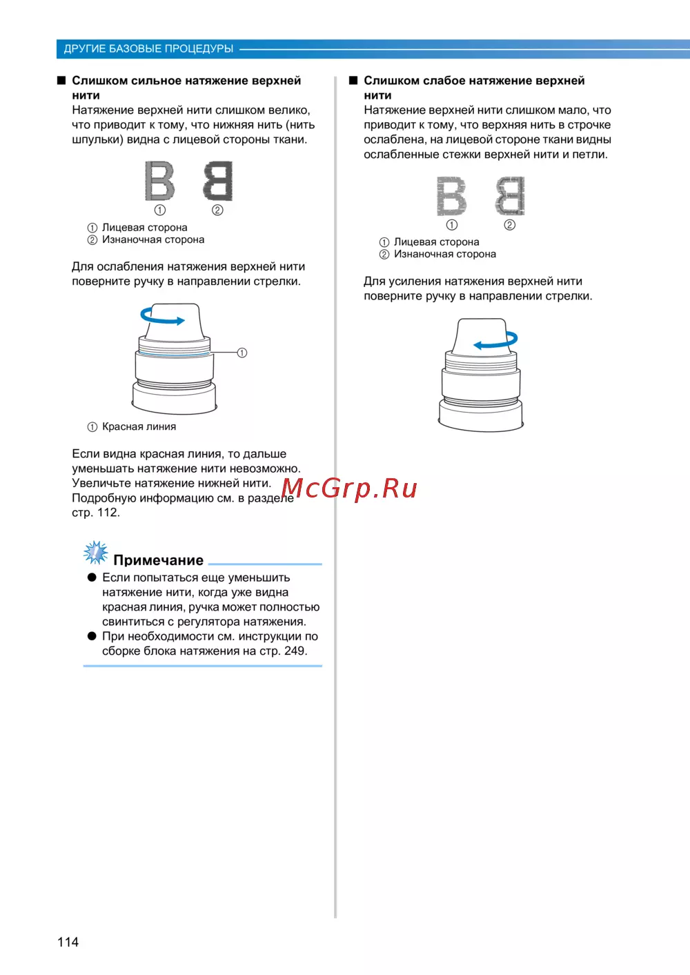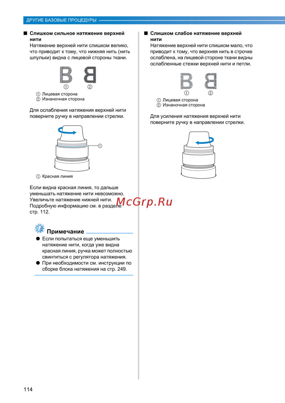 Brother PR 655E ENTREPRENEUR (PR655E) — решение проблем с натяжением верхней нити в швейных машинах [116/280]