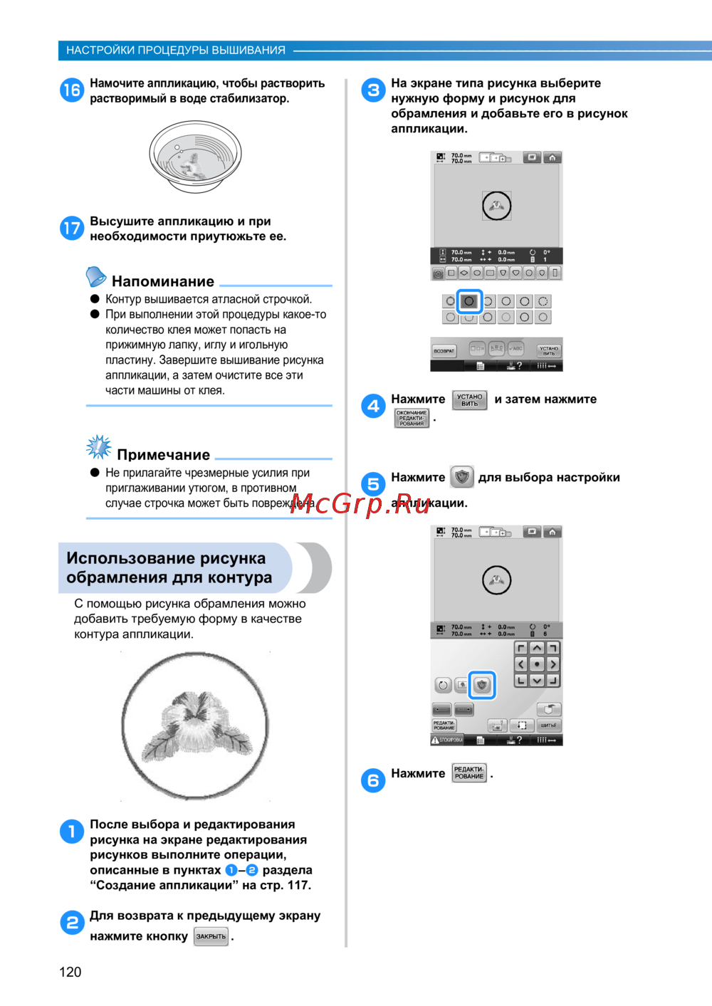 - Не выполняйте вышивание более чем на четырех перекрывающихся уровнях p.241