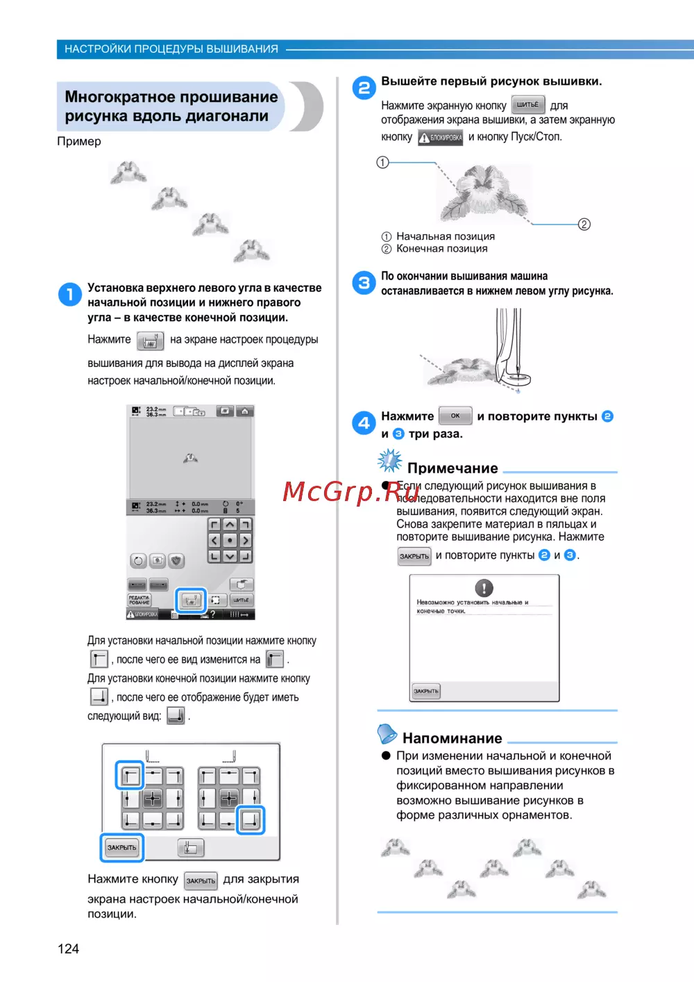 Узнайте, как правильно настроить процедуру вышивания, установить начальные и конечные позиции, а также вышивать рисунки в различных орнаментах.