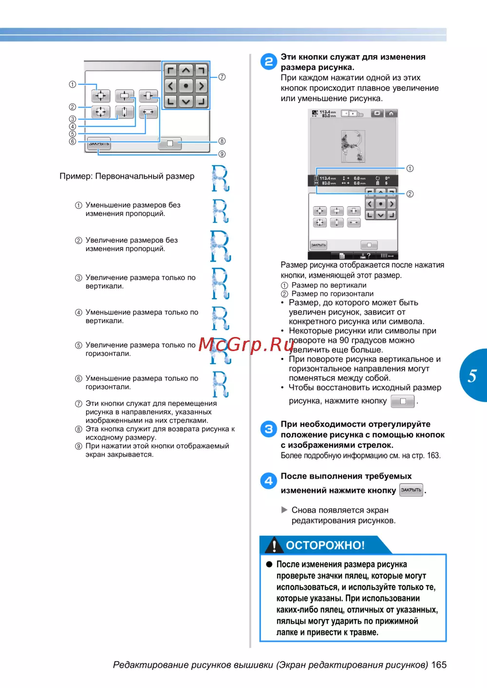 Brother PR 655E ENTREPRENEUR (PR655E) — редактирование рисунков вышивки: изменение размера и положения [167/280]