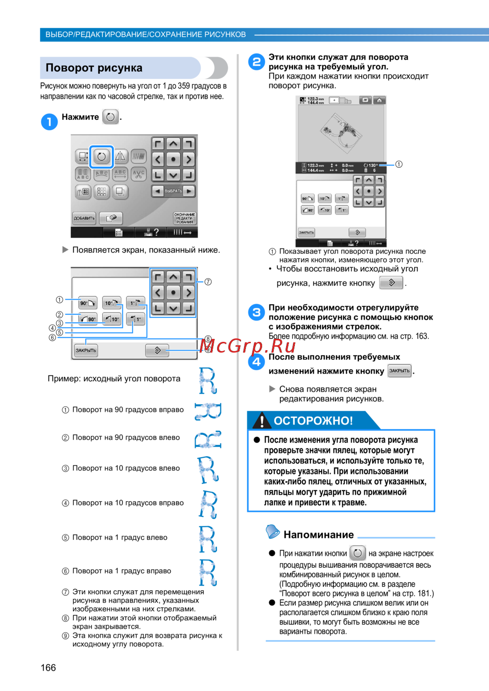 Brother PR 655E ENTREPRENEUR (PR655E) — как поворачивать и редактировать рисунки для вышивки [168/280]