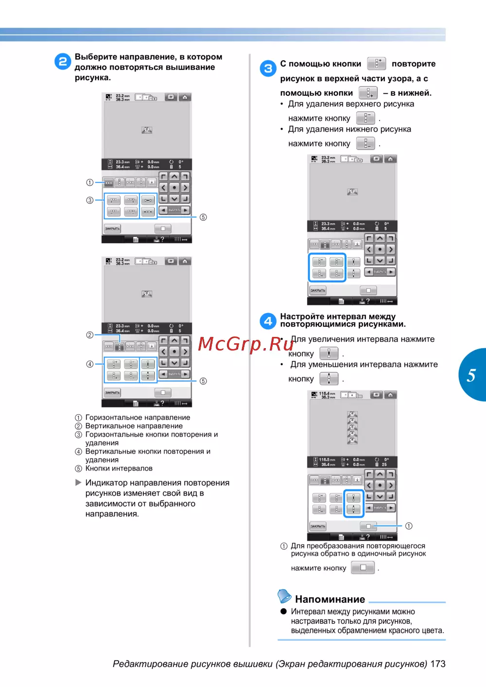 Узнайте, как редактировать рисунки вышивки, настраивать направление и интервалы повторения. Простые шаги для управления узорами и их удалением.
