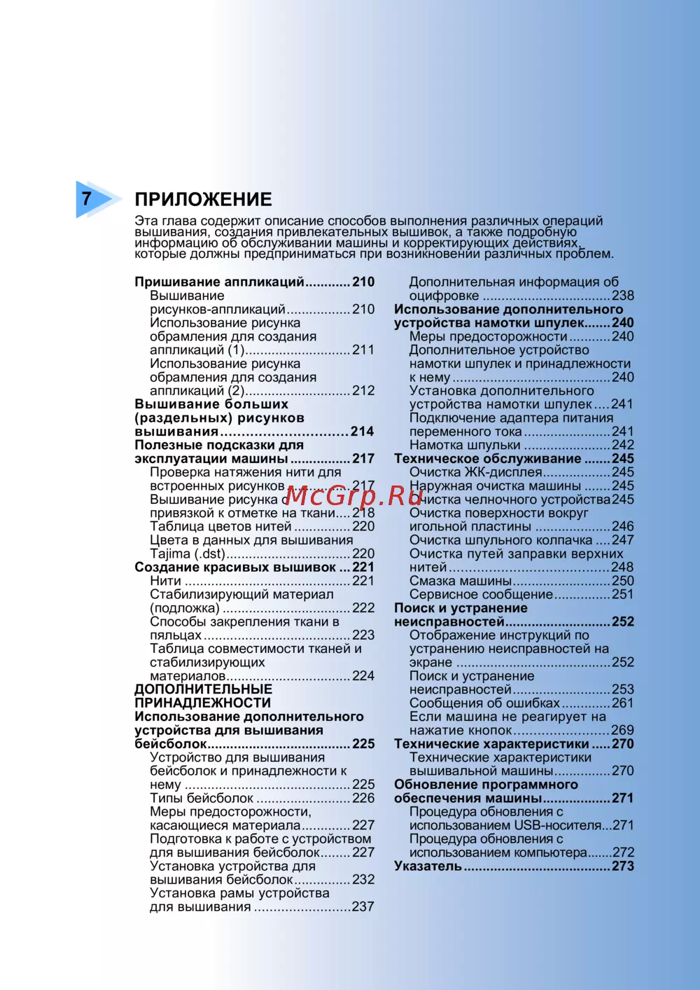 - Технические характеристики вышивальной машины p.272
