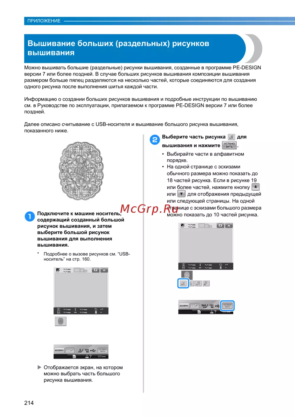 Информацию о создании больших рисунков вышивания и подробные инструкции по вышиванию