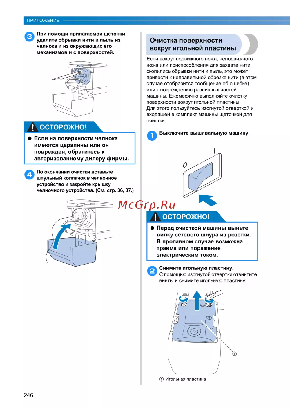 - Очистка челночного устройства p.247